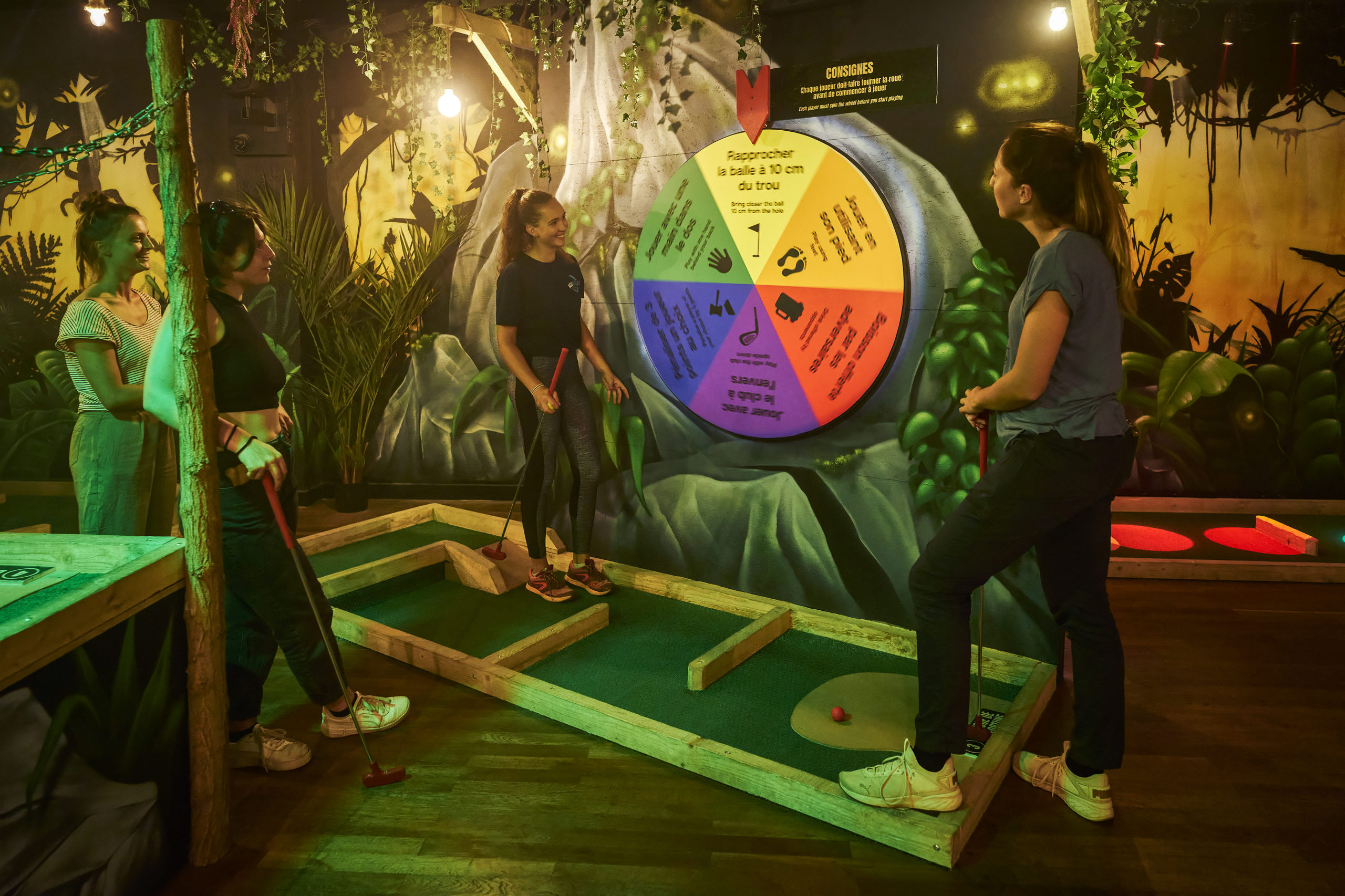 Bienvenue au Pachamama, Loisirs Indoor & Jungle Bar climatisé à Albertville ! Découvrez une activité unique de minigolf, un salon de karaoké et blind-test, des terrains de fléchettes, ainsi qu’un bar à thème inédit !